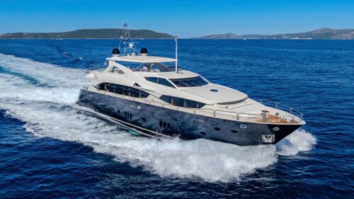 Giorgio is an Italian-built motor yacht featuring a GRP hull and superstructure, offering excellent seakeeping maneuverability, and fuel efficiency thanks to he planning hull. The Monte Carlo Yachts 86 represents the perfect balance of smart production and bespoke customization—hallmarks of the MCY brand.